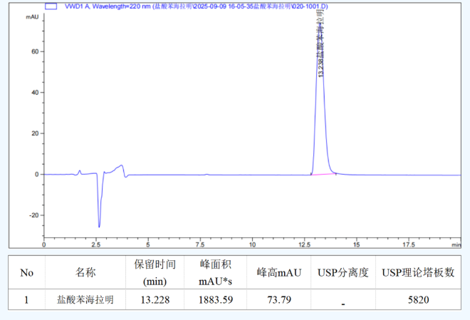 本文参照2025版中国药典二部盐酸苯海拉明有关物质检测方法以及欧洲药典方法,分别使用恒谱生USHD CN、USHD C18-AQ色谱柱,检测结果满足药典要求。
